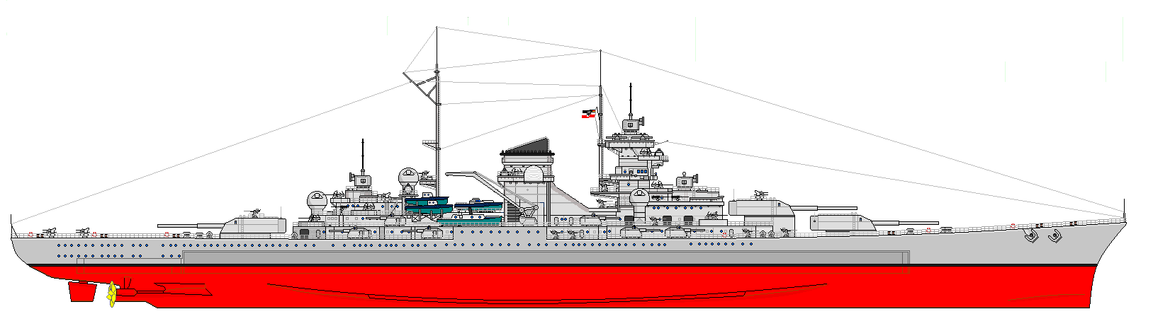 | As I was doing research into the ship and trying to decide which color scheme to use, I came across an obscure photo of the ship that showed a splinter paint scheme similar to the one used on Tirpitz during Operation Sizilien.