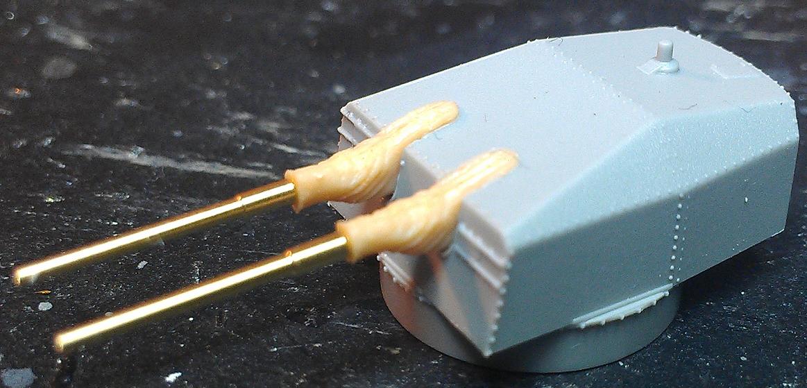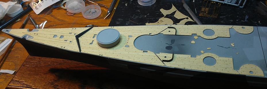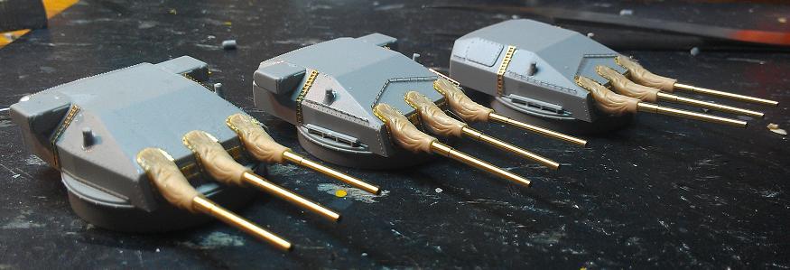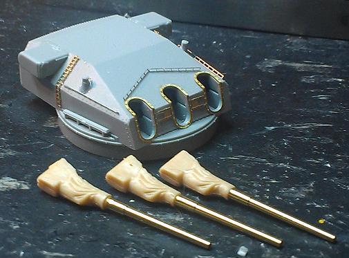 Range finder and radars completed. I replaced the plastic yardarms with .020 Brass rod but it seems a little soft and flexable for tying off the rigging so I might pull them and replace them with Stainless Steel. In my impatience to try out these wooden decks and against my better judgement, I've painted an assembly and then added the deck. After which I began to wonder.... Would the insides of the splinter shields along with whatever deck equipment installed have been painted the same as the outside of would they have retained the neutral gray color? 11/14/2013